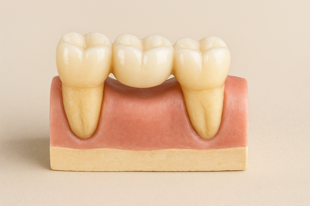 Auch die ästhetischen Aspekte spielen eine zentrale Rolle. Farbgebung, Transluzenz und Oberflächentextur werden so gewählt, dass die Versorgung sich harmonisch in die natürliche Zahnreihe einfügt und unter funktionellen Bedingungen langfristig zuverlässig bleibt.